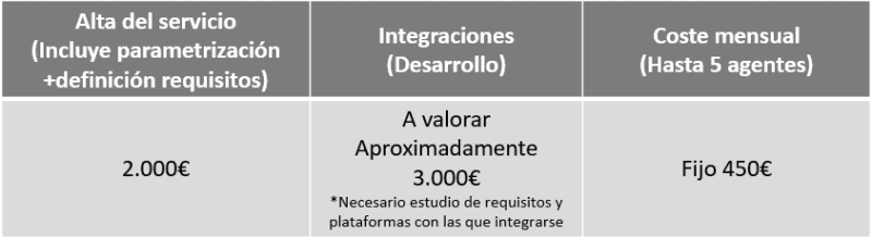 Coste servicio: es necesario un análisis de la estimación de horas de los servicios.